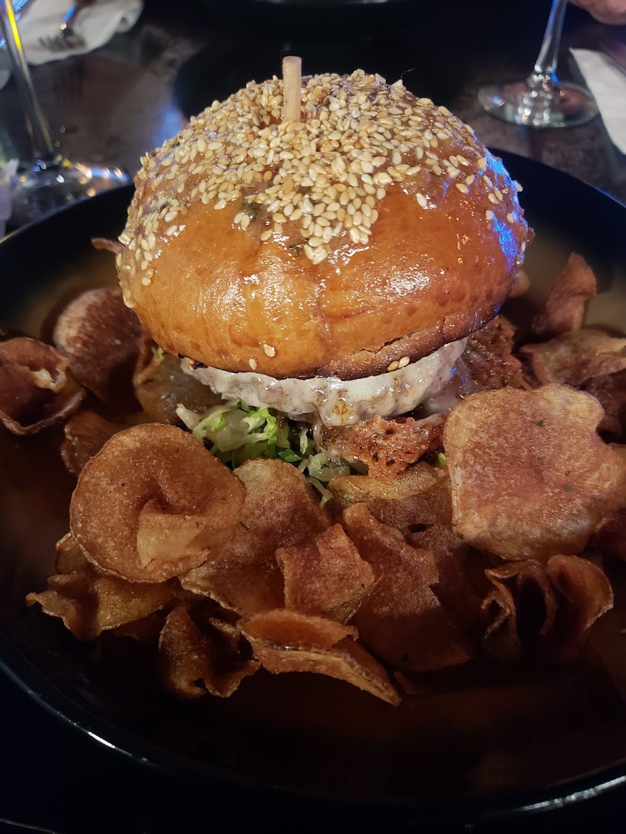 This place was crazy fun, the atmosphere was amazing, and the conversations were enthralling. The bartender is a hoot, and the people there will have you wheezing. Besides that I gotta give compliments to the chef. I got the Angus burger and let me tell you, you gotta try it. They add something sweet to the burger (I skepticize it to be some sort of jam) but the contrast that it makes.with the savory burger is amazing. Not to mention the Fry's cooked to perfection; exactly what I needed. All around the place was very clean, definitely up to date on everything; and from what I've seen of the kitchen there's not much to worry about. The bathrooms were spiff and span and the mirror was cool. Which brings me to my final point, The layout. I had to say the design of the bar was very classic, you come in and are treated with a bar and a few tables and a booth wall. The kitchen connects behind the bar and out of the bar and a kitchen window. Then a small hallway that leads to both genders bathrooms and some other off limit stuff I presume(Didn't snoop around too much XD). I really like the bar and how the spirits were backlight. To summarize, id give it a 5/5 if you're looking for a good time.